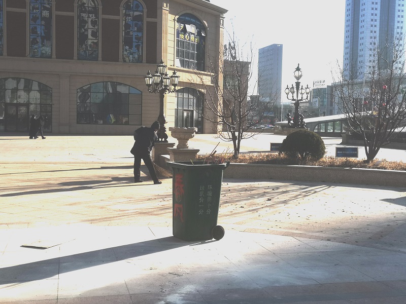 兔年的新春佳節政府放開了鞭炮限制,被疫情壓抑了三年的人們得以釋放。進入小年每天都有很多人在市府廣場將近3萬平的廣場上放鞭放炮好不熱鬧。廣場上到處都是一堆一塊的鞭炮絮,焰火桶,煙花雜物等。寒風凜冽商業公司的保潔員,依然在嚴寒中默默地堅守崗位沒有一絲怨言。