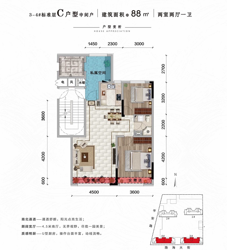 中天御品項(xiàng)目位于營(yíng)口市渤海大街與平安路交會(huì)處,地處西市區(qū)核心位置,營(yíng)口主城區(qū)的交通要道,地理位置十分優(yōu)越。行政配套遍布項(xiàng)目周邊,商業(yè)配套齊全滿(mǎn)足您日常購(gòu)物所需。 項(xiàng)目占地面積1.6萬(wàn)㎡,建筑面積3.7萬(wàn) ㎡,整體由4棟17層新中式雅居小高層組成,配有商鋪及車(chē)庫(kù)/車(chē)位,完全人車(chē)分流設(shè)計(jì)。 戶(hù)型種類(lèi)齊全,面積區(qū)間從88平到118平,從兩室兩廳一衛(wèi)到三室兩廳兩衛(wèi)。全部戶(hù)型均為南北通透的五明戶(hù)型設(shè)計(jì)。
